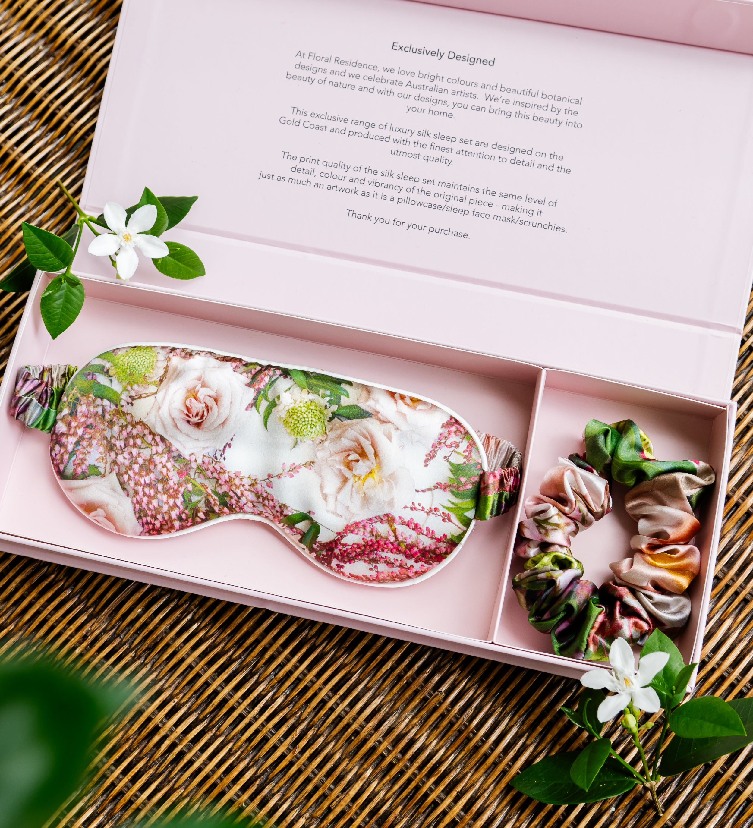 From cushions that comfort your body, to silk pillowcases that hydrate skin, to lusciously soft eye masks that block light and encourage deep rest — every Floral Residence piece enhances your daily rituals of wellness.