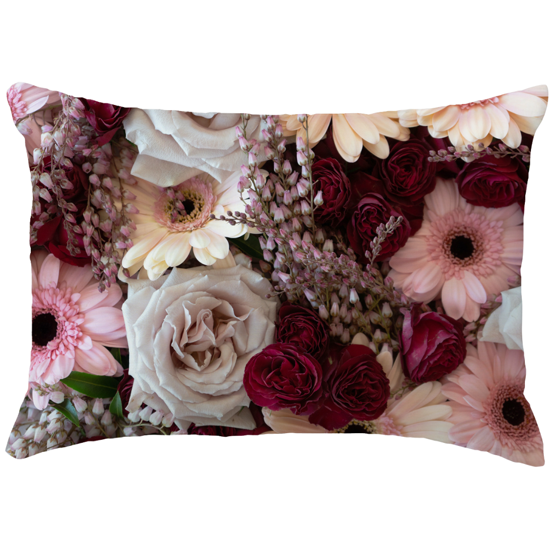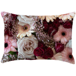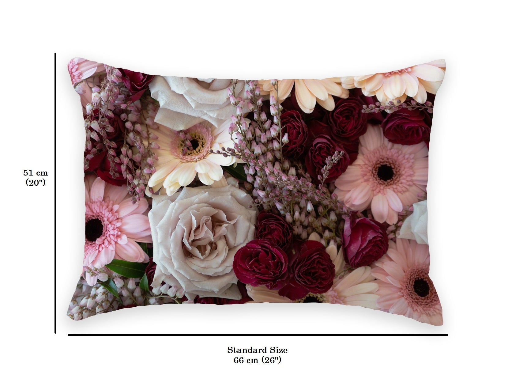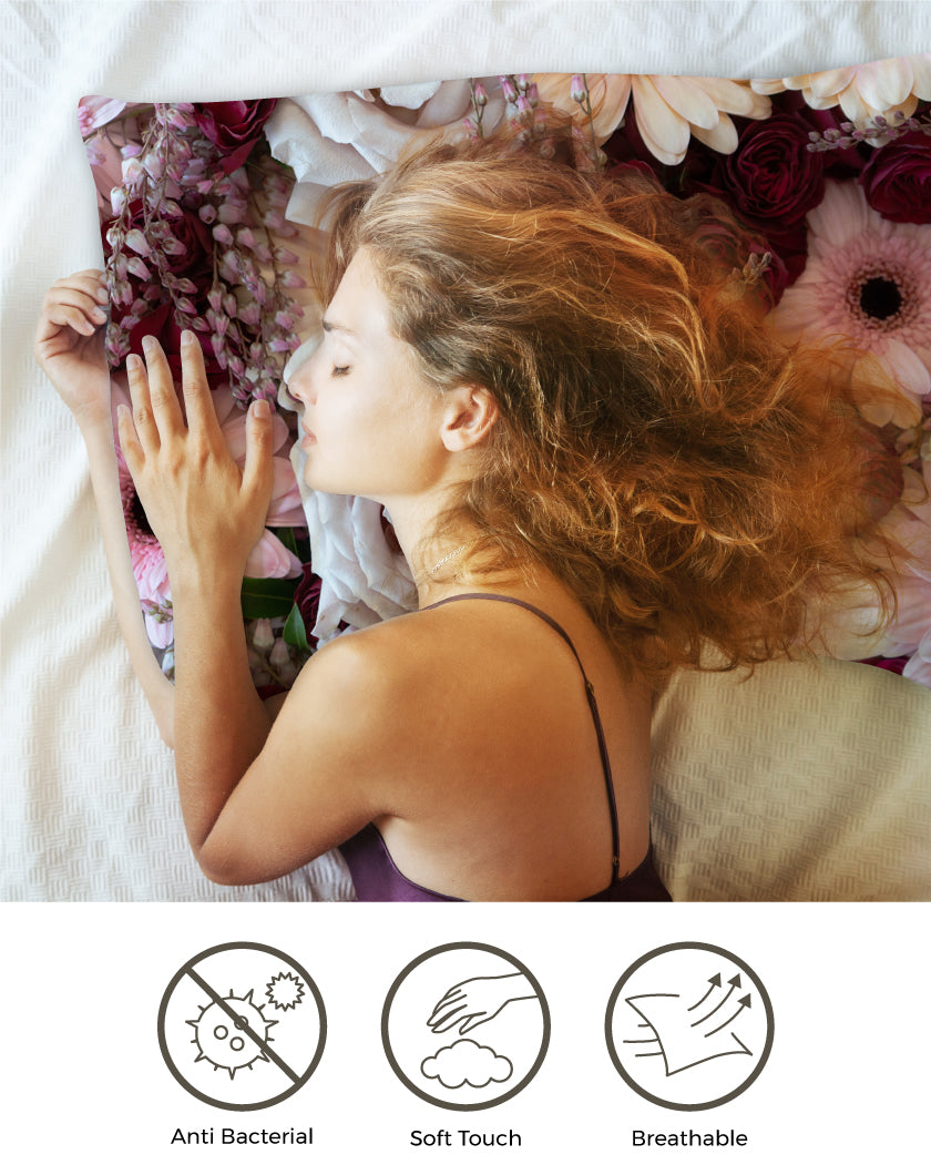 Choose the Elegance pillowcase and enjoy the restorative rest that only luxury silk can provide. Artist-designed with care, it brings a fresh, floral vibe to your bedroom while helping you relax. Delicate pink gerberas and tiny bell-shaped andromeda blooms nestle among classic ivory roses in this striking print. Not only does this silk pillowcase brighten your space, it also creates a soft, lustrous surface for truly comfortable sleep – and its elegant style complements almost any bedroom décor.